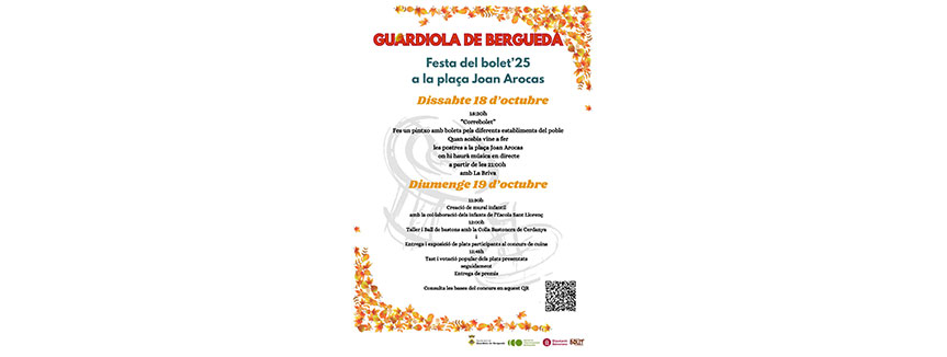 Du 24 au 26 octobre, que cette localité située au sud de la Seu d’Urgell, célèbrera la 30ème édition de la Fira del Rovello et la 6ème Fira de la Muntanya. Cette foire aux champignons de Col de Nargo propose également plusieurs animations liées d’une part avec la mycologie, conférences, marché, dégustations, ainsi qu’une foire artisanale, une expo de voitures anciennes, un bal, des promenades en poneys ou encore les visites des musées des dinosaures ou encore du Museu dels Raiers et d’autres surprises, comme en gastronomie, une délicieuse “Carpa de la Ceba”.