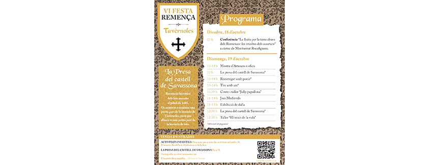 Après le succès de l’édition précédente, Sant Pere de Vilamajor (Vallès Oriental) vous transportera à nouveau au XIIème siècle, du 24 au 26 octobre, à l’occasion de Vilamagore Medieval. Une manifestation qui gagne en temps et en lieux, avec des spectacles plus longs, dans des bâtiments ou des sites emblématiques du village. Une fin de semaine au Moyen-âge, marquée par des défilés musicaux, l’implantation de campements de la soldatesque, des démonstrations d’archers, des tournois de chevaliers, des reconstitutions de bataille, des danses et de la musique. Ne surtout pas manquer l’incendie du château et le Cau de Bruixes…