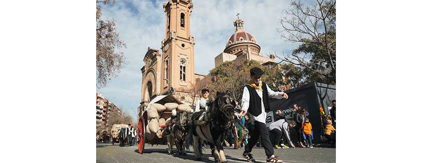 Selon les romains, faire faire trois tours au bétail autour d’un temple avait un pouvoir curatif. Cette tradition a semble-t ‘il la vie longue en Catalogne. Ainsi, à Igualada, on célèbre toujours cette fête. L’édition 2026, a lieu ce dimanche 18 janvier. Des charrettes transportant du bois, de la paille, des mules chargées de toutes sortes de marchandises, des corbillards et autres équipages à l’ancienne défileront dans les rues de la capitale de l’Anoia. C’est l’un des défilés de Tres Tombs des plus importants de Catalogne et en plus, il a la particularité d’être accompagné par la musique de la Patera, une ancienne danse de la ville.